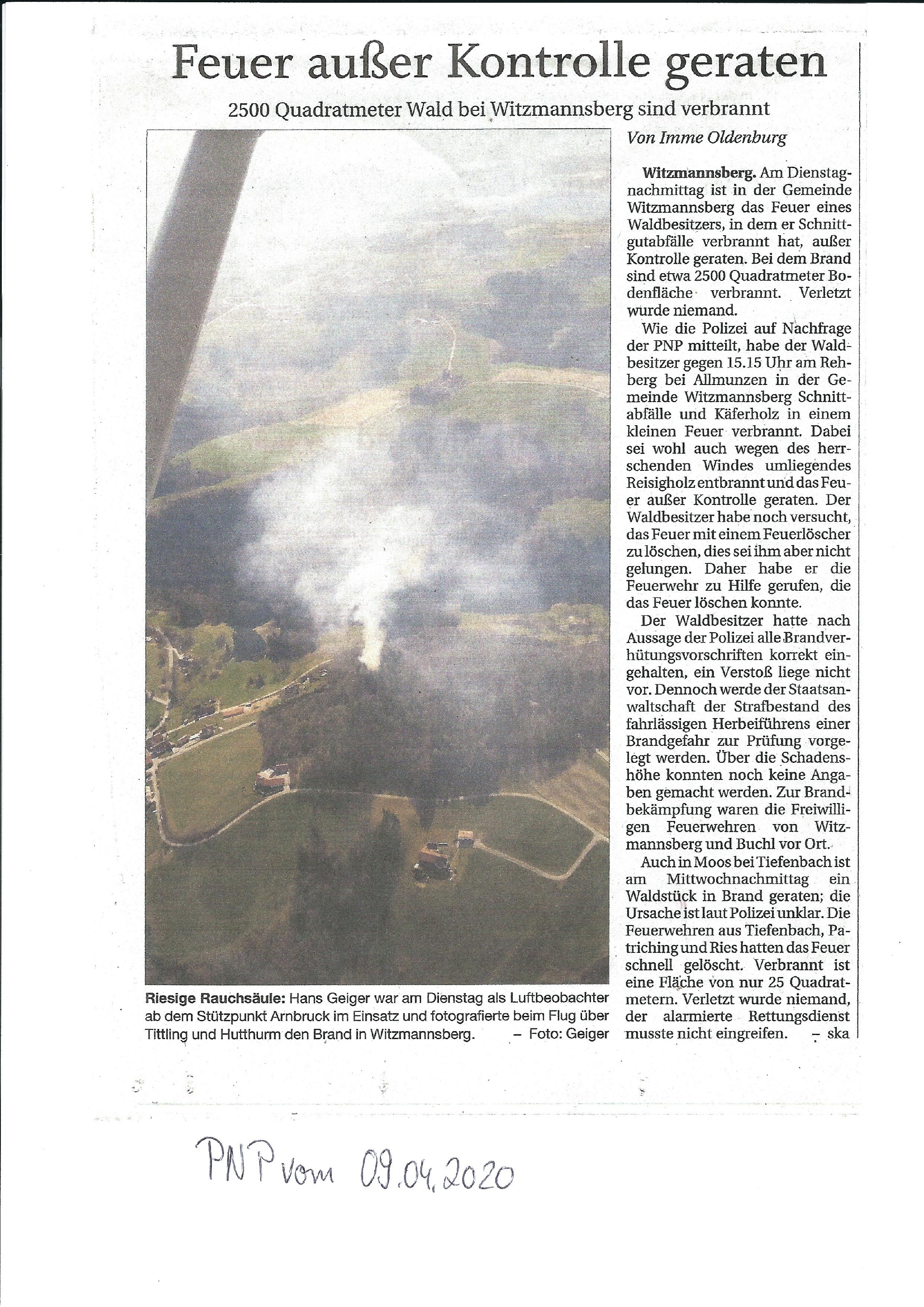 | Alarmierte Einheiten | FF Ries FF Patriching FF Tiefenbach |